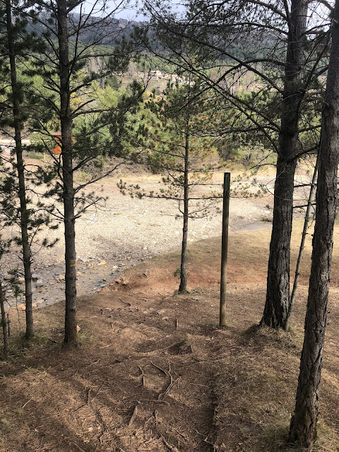 En aquest punt ens vam passar de llarg uns metres del track correcte, malgrat que acompanyats de la gossa Atia, aquesta ens havia marcat el camí. Així que descendim uns metres per agafar ara el Barranc de la Sabina, encara més estret si cap, fins que ja a una bona alçada, es va obrint i el corriol ens porta a una sabina immensa i aillada. Una sabina, arbre de la familia del xiprer, perenne, que no està en perill d'extinció, però que es una autèntica reliquia, del que van ser els boscos d'aquestes comarques i de moltes altres mediterrànies, fa desenes de millers d'anys!